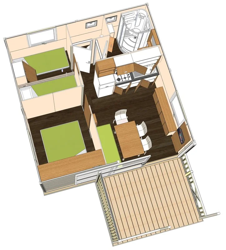 Du chalet 1 chambre au mobil-home 3 chambres, avec ou sans sanitaires pouvant accueillir jusqu'à 6 personnes en passant par une simple toile de tente, vous trouverez assurément l'hébergement qui vous convient !